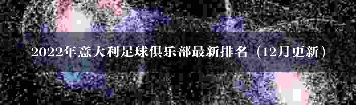 NBA新闻 2022年意大利足球俱乐部最新排名(12月更新)