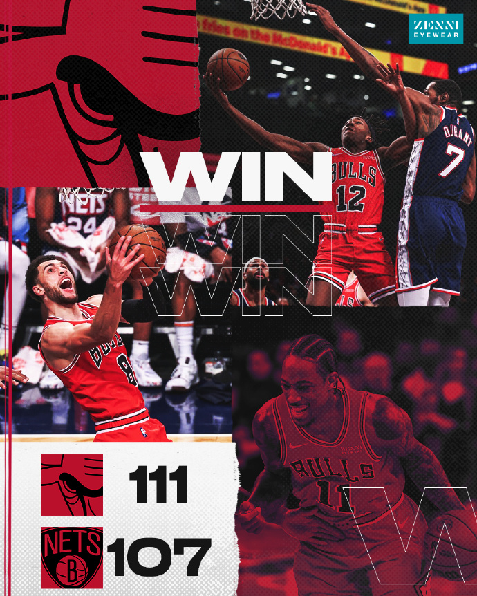 NBA新闻 篮网107-111不敌公牛 拉文31+8+6 德罗赞29+6 杜兰特28+10