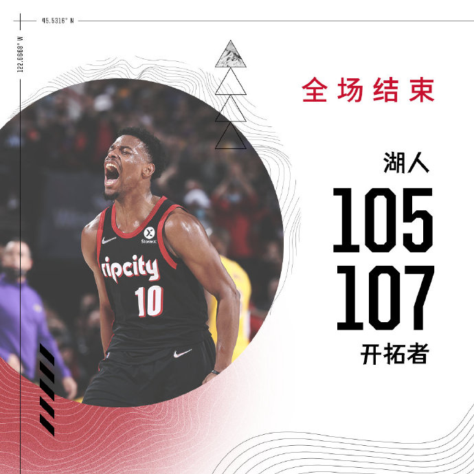 NBA新闻 湖人105-107不敌开拓者 西蒙斯29分 努尔基奇19+12 詹姆斯30+7+7