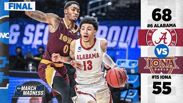 NCAA新闻 【2021NCAA64进32】爱欧纳学院55-68阿拉巴马大学