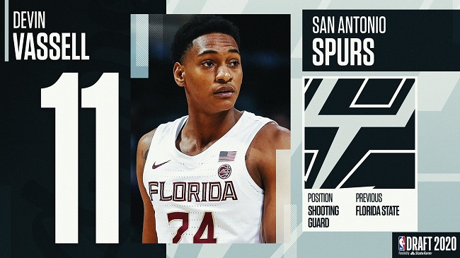 北京时间11月19日,圣安东尼奥马刺队在首轮11顺位选中了来自佛罗里达州立大学的大二3D球员德文-瓦塞尔 (Devin Vassell)。