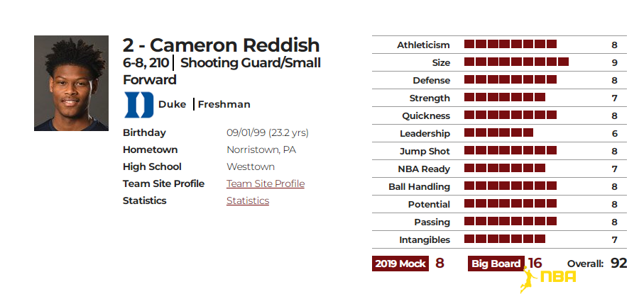 【球探报告】卡姆-雷迪什(Cam Reddish)